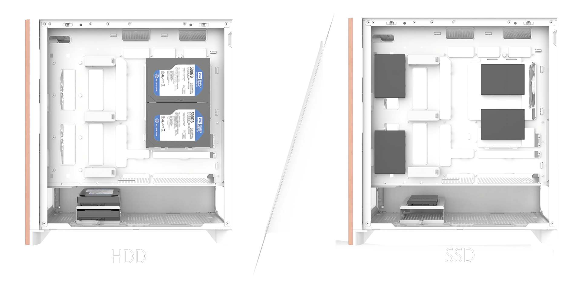 內建電源保護殼,提供玩家線材收納理線區域,保持外觀簡潔不雜亂,也提供更良好的通風的系統環境。