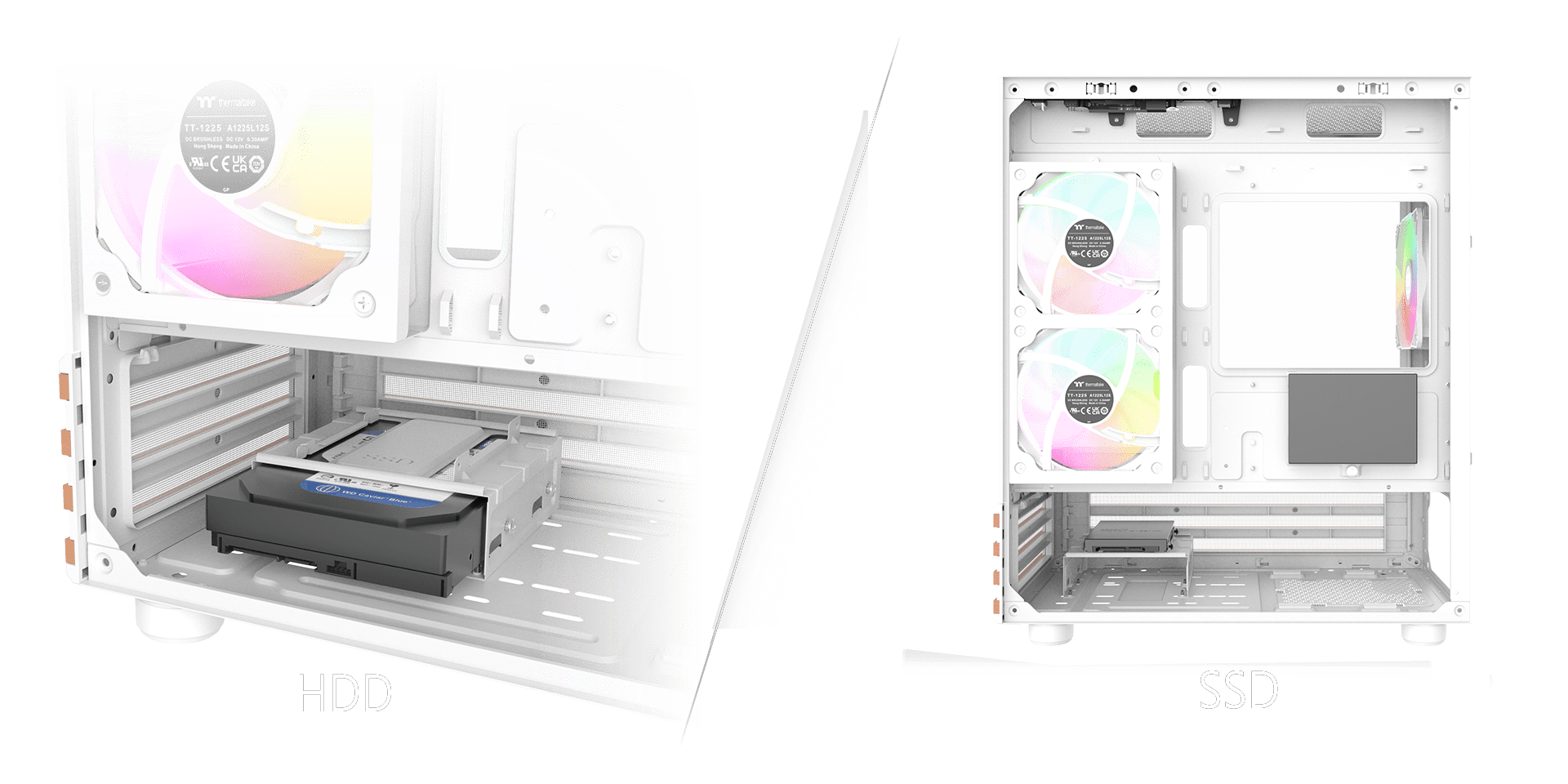 光透 View 170 WS ARGB 小型機殼 雪白版主板側內建兩個 120mm液壓軸承反轉扇葉 ARGB Lite 風扇,及後方內建一個 120mm液壓軸承 ARGB Lite 風扇,其燈光效果可以透過華碩、技嘉、微星和華擎的主板燈光控制軟體操控,讓玩家可以打造絢麗的燈光秀同時享受良好的散熱表現。